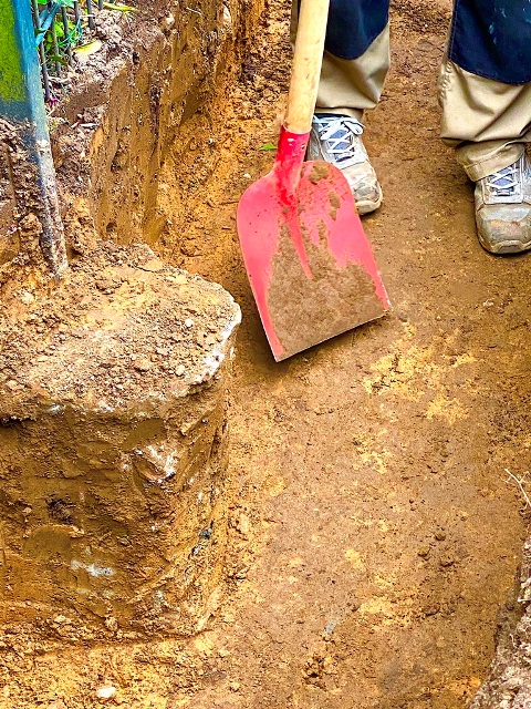 Erdaushub in Hamburg erfolgt nicht nur mit Maschinen, sondern erfordert oft präzise Handausschachtung. In sensiblen Bereichen greifen unsere Mitarbeiter zur Schaufel und arbeiten kraftvoll sowie kontrolliert mit Muskelkraft. Das Bild zeigt echte Baustellenpraxis: sorgfältiger Erdaushub, genaue Freilegung und sichere Ausführung auch dort, wo Bagger an ihre Grenzen stoßen. So verbinden wir maschinelle Erdarbeiten mit handwerklicher Präzision.Erdbau in Hamburg. Ihr Partner für präzise Erdarbeiten und Geländeplanung.
