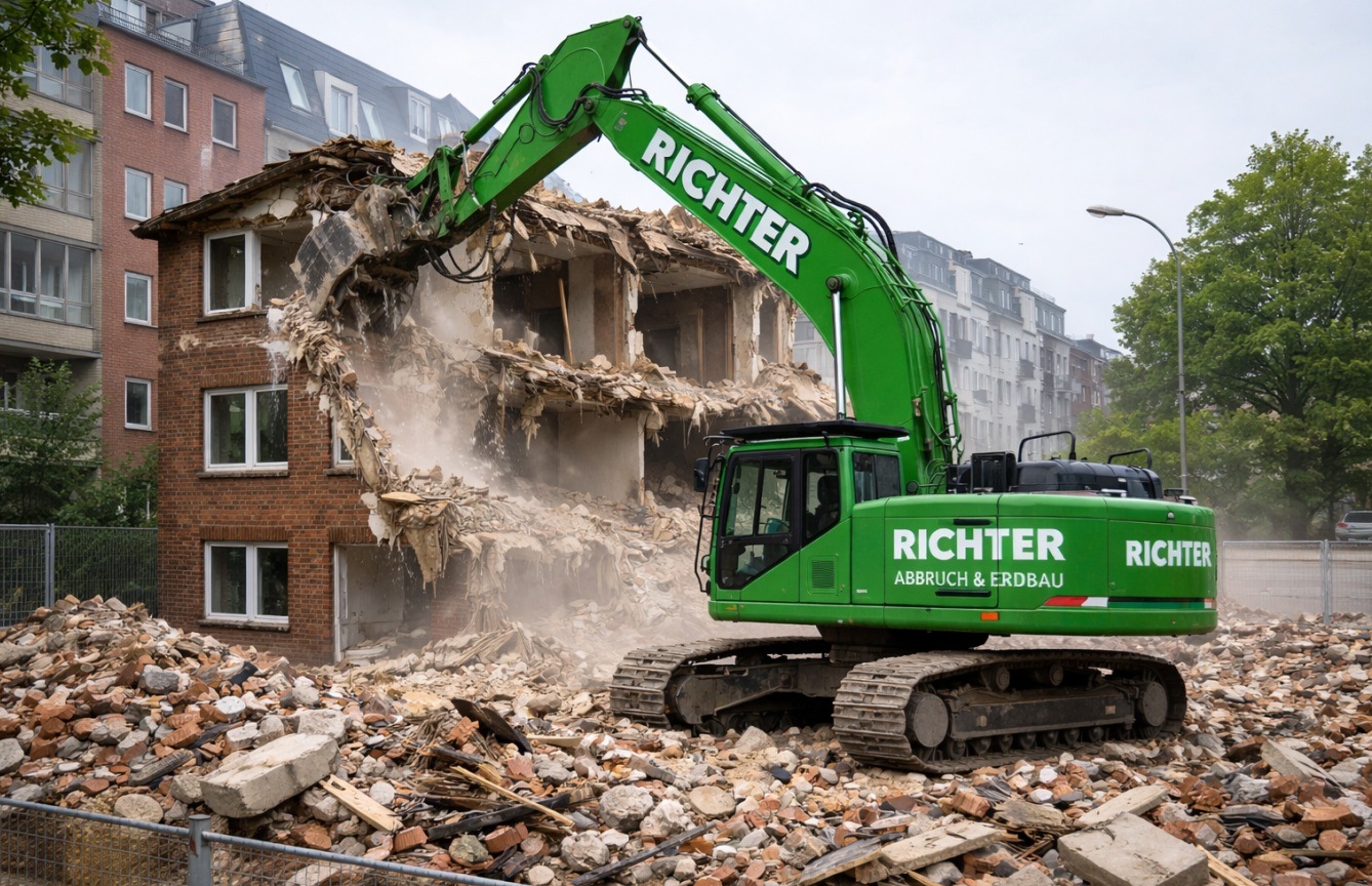 Unser kompetentes Personal hält in jeder Phase der Abbrucharbeiten höchste Sicherheitsmaßnahmen ein. Darüber hinaus reduziert es den Geräuschpegel und Staubentwicklungen auf ein Minimum. Ihre Zufriedenheit ist unsere höchste Priorität. Dafür investieren wir in die besten Maschinen und legen Wert auf die regelmäßige Weiterbildung unserer Mitarbeiter. Damit können wir unser hohes Qualitätsniveau konstant halten.Abbruch RICHTER in Hamburg Ottensen